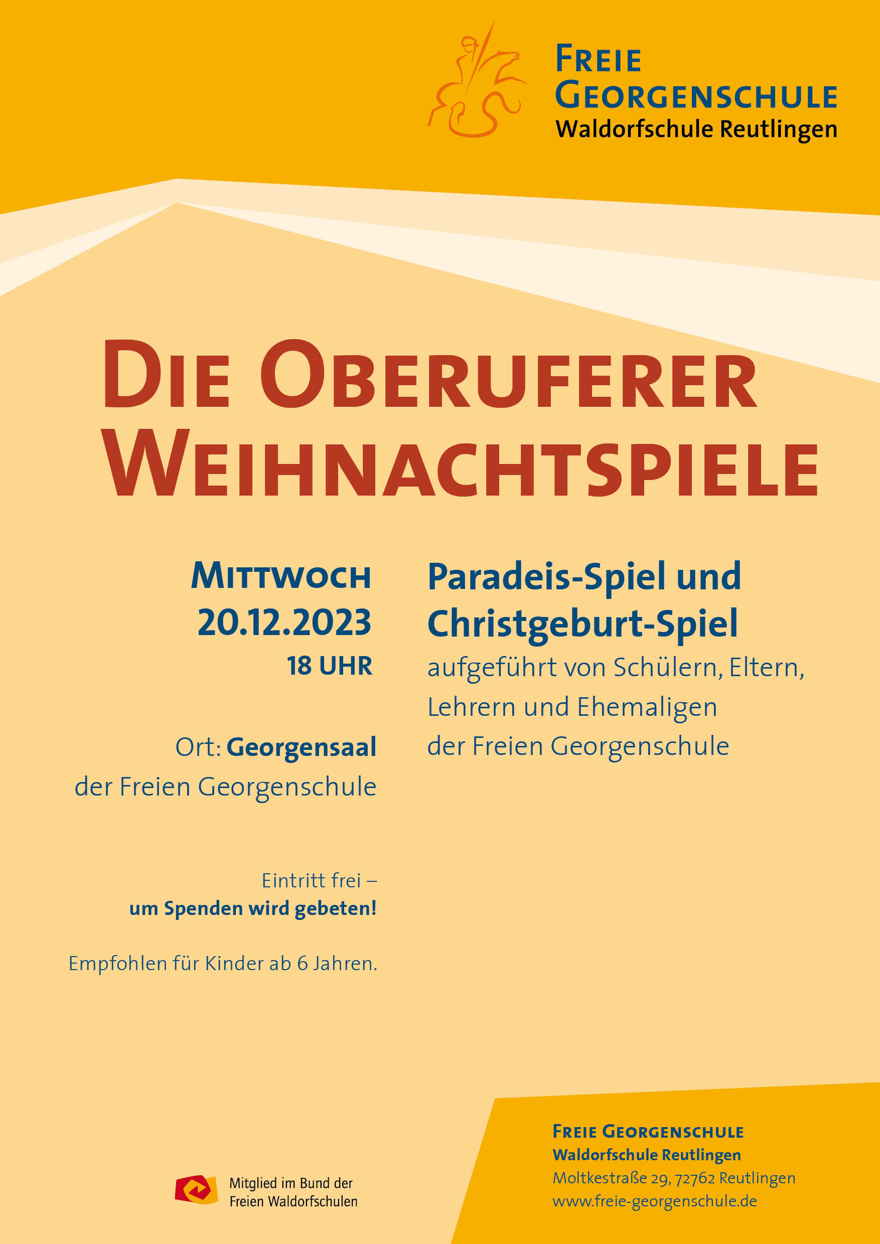 Die Freie Georgenschule Reutlingen lädt Sie ein: